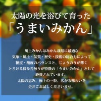 川上みかんはみかん栽培に最適な気象・風土・気質・歴史・技術の総合力によって糖度・酸度のバランスと、じょうのうが薄くとろける様な舌触りが特徴の「うまいみかん」として絶賛されています。