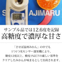 光センサー選果機により、糖度12度以上、酸度1%以下の厳しい基準をクリアしたみかんが「味まる」として出荷されます。